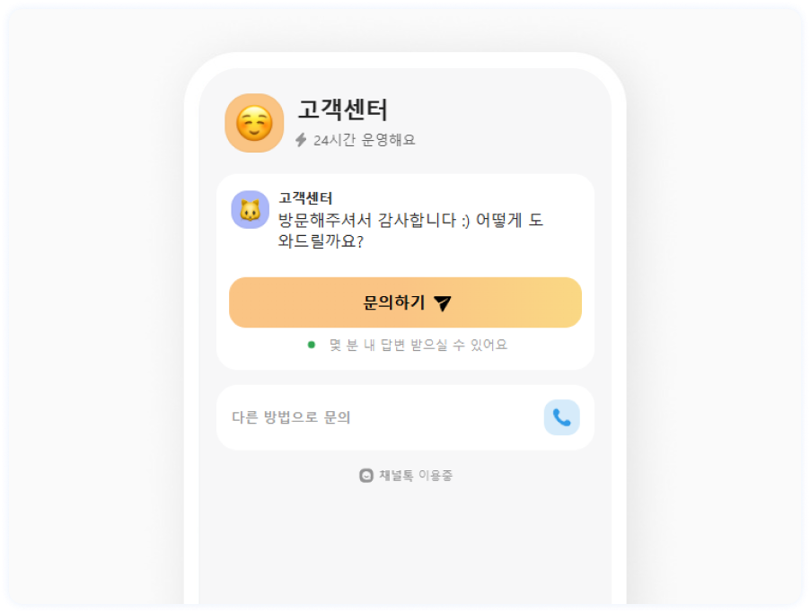 채널톡&전화, 친절한 상담으로 궁금증을 해결해드립니다!