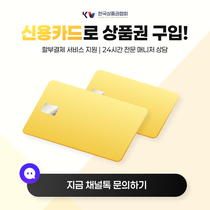 상품권을 한 번에 결제하기 부담스러우셨다면, 신용카드 할부를 통한 상품권 할부구입을 이용해보세요.
